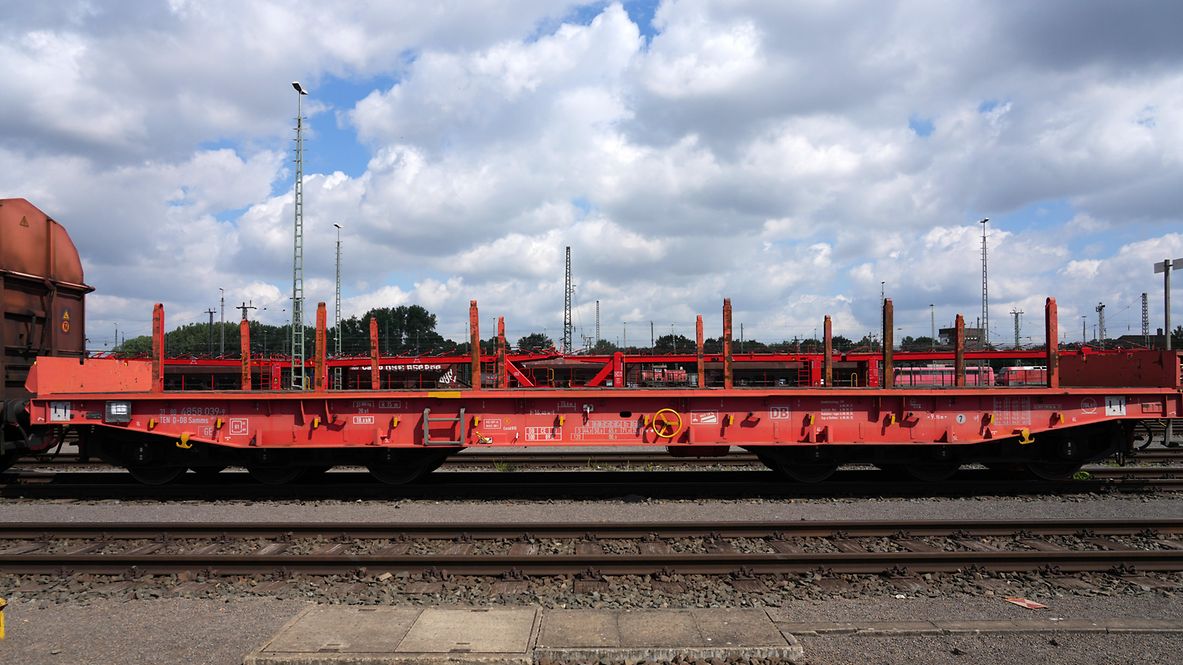 The wagon is used with folded-out bolsters for transporting heavy rolled steel sections and other bulky goods. With the bolsters folded in, i.e. with a level loading deck, it is also suitable for transporting heavy tracked vehicles. Drop ends that can be driven on are provided for loading and unloading such vehicles.